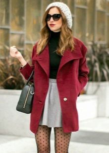 Choosing a hat to a gray coat Try to take into account the saturation of gray, the darker the shade, the brighter you can choose a hat. With a dark gray coat blends a cap of soft blue or pink hues. Red, burgundy, cherry betray gray coat elegant look. A dark cherry hat with small margins effectively stands out against the background of a light gray coat. With a cool gray and blue look, the cap gives expression and color.