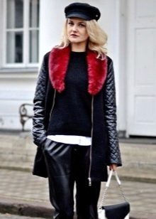 Fur, suede or leather caps organically coexist with a leather coat. Leather coats, thick drape caps, men's-style hats, fur hats - cuban caps will suit the military-style coat.