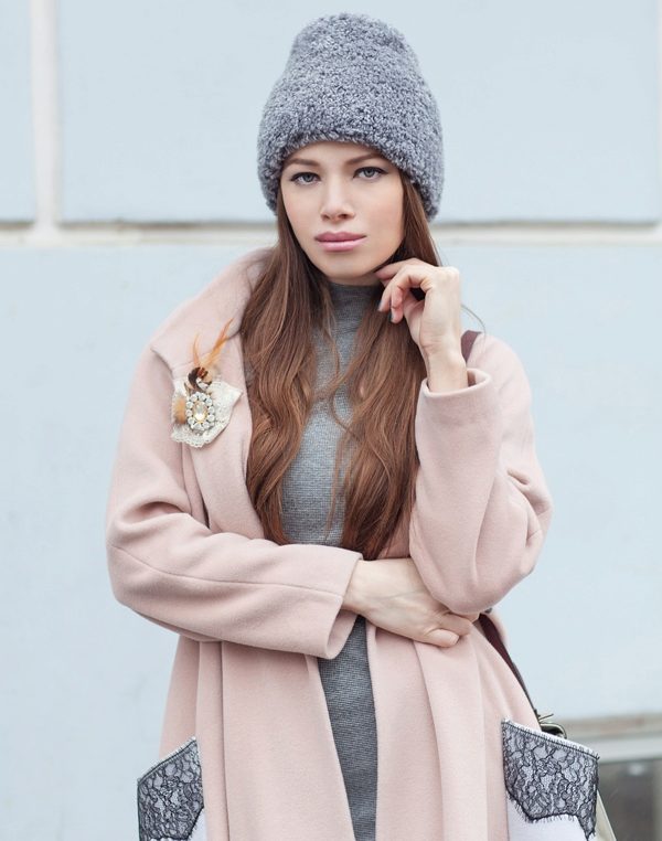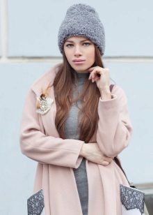 In addition to the color combination of the coat and headdress, it is recommended to pay attention to the texture of the material. If the coat is made of textured fabric, for example, a boucle, then when choosing a headdress, you should prefer smooth models. Headdresses made of similar materials and knitted hats with different decorations will fit drape and cashmere.