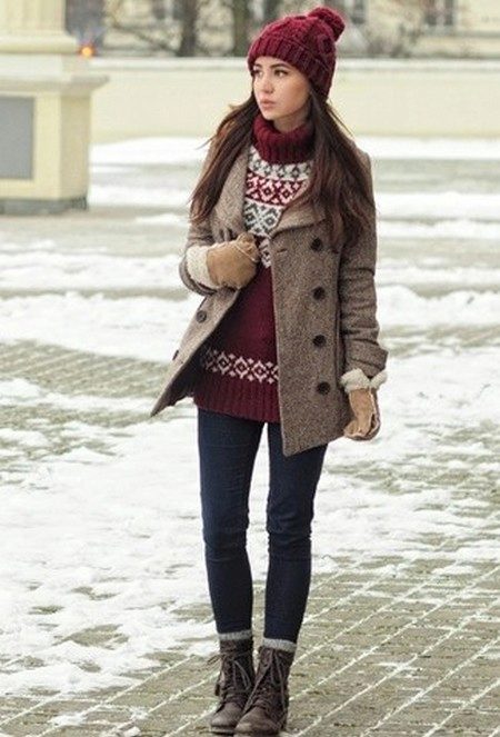 Brown coat will decorate a hat of red, orange or warm yellow color. White and light beige shades have always been excellent companions for brown. The combination of brown and gold will be luxurious.