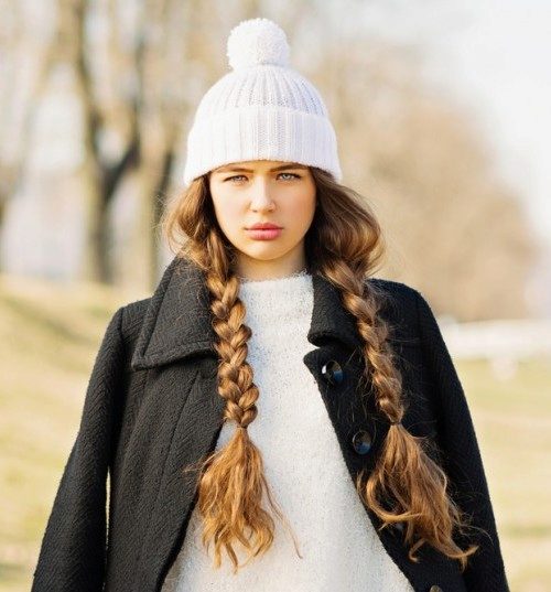 Girls with a round face will not fit too tight models and hats with small brim, but a hat-cap visually lengthens the round face and will look very harmonious. With a triangular face shape, it is advisable to choose models covering the forehead, strongly fitting hats are not recommended, hats - earflaps, with ears hanging at the level of cheekbones, hide the narrow chin and visually balance the lower and upper parts of the face.