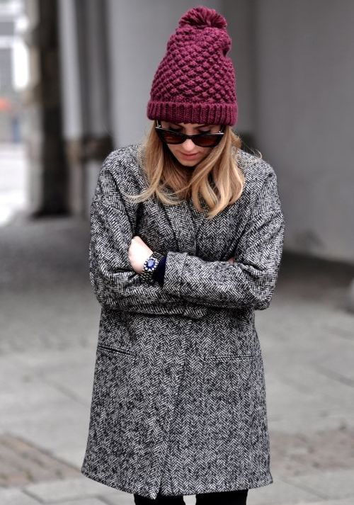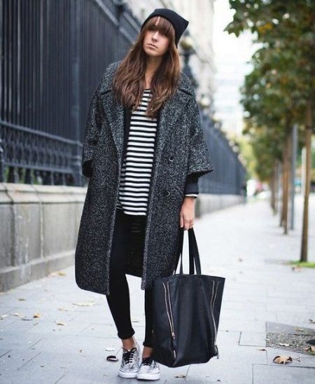 The fashion of the last years on the coat - oversight does not fade away, many women support this laid-back style. A distinctive feature of the oversized fashion is a free cut, comfortable and not constraining movements. With what headpiece to wear this extravagant thing?