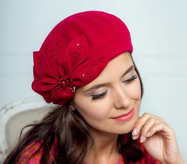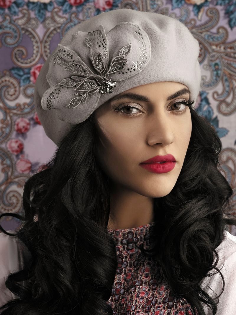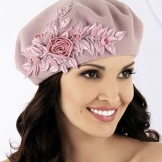 Beret lovers are offered a huge selection of models of various shapes., decorated with curly folds, appliqué, embroidery, bows, velvet, decor of rhinestones and pearls, etc.