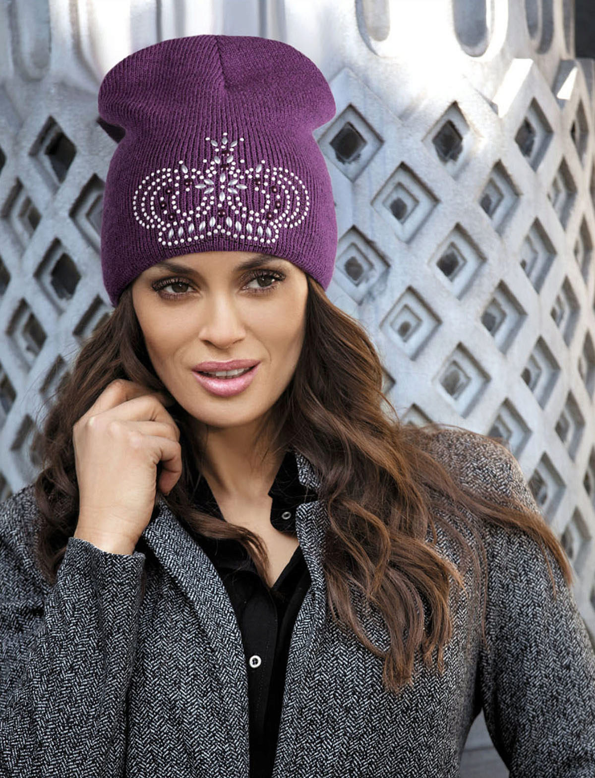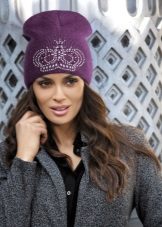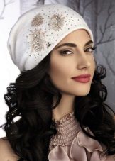 More feminine and romantic models decorated with all sorts of crocheted flowers, pieces of fur, bows, beads or rhinestones. Double caps are most often performed on a soft fleece lining.