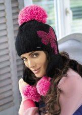 The original black and white hat with a large pompon and long ears decorated with tassels is best suited to the cold season. New Year's mood adds a beautiful ornament in the form of snowflakes.