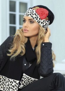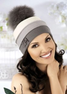 For a cold winter double hats are perfect. As a rule, they have an elongated shape and are decorated with a special clip at the back.As an additional decor, a wide stripe with a tweed pattern is used that runs along the entire circumference of the head, as well as a composition of natural fur. This is one of the design options.