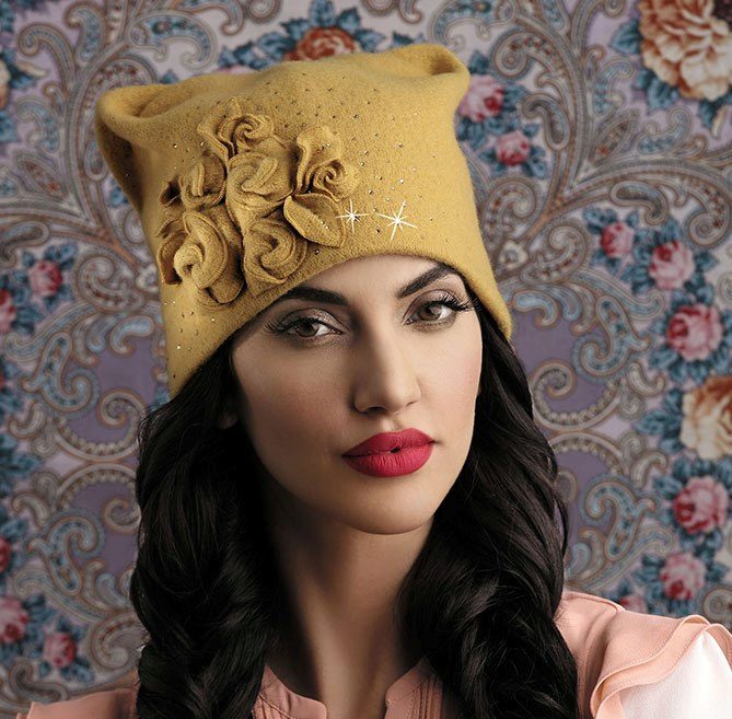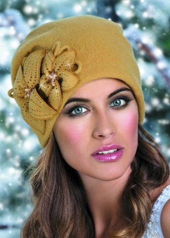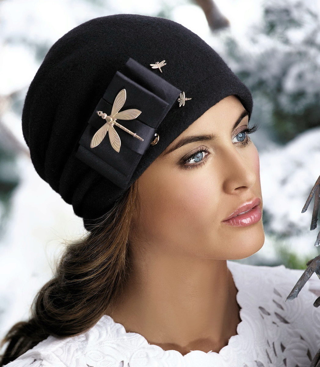 Ladies who prefer an elegant style of dress, it is recommended to turn their attention to the models of hats, berets and hats made of cashmere or felt.
