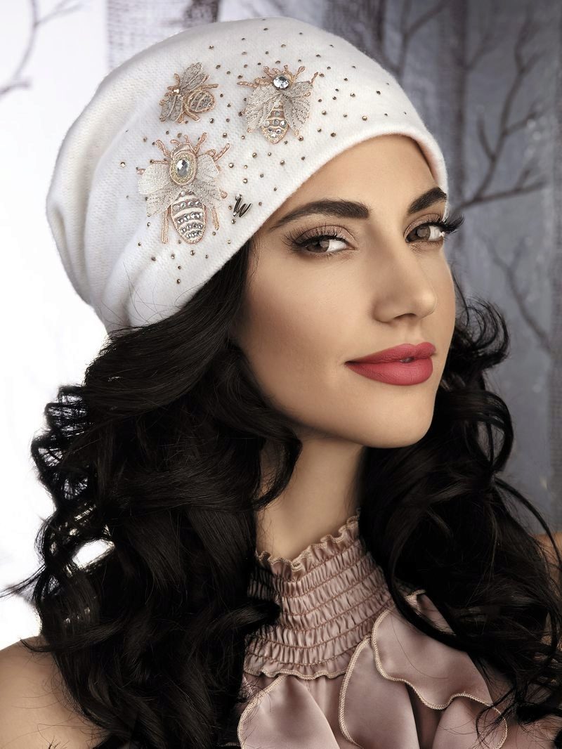 Ladies who prefer traditional classics will love berets and hats made in white or black. Lovers of brighter, more saturated tones should pay attention to the models of deep wine, red, rich blue, exquisite coral, berry-pink color, ocher shade, etc.