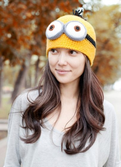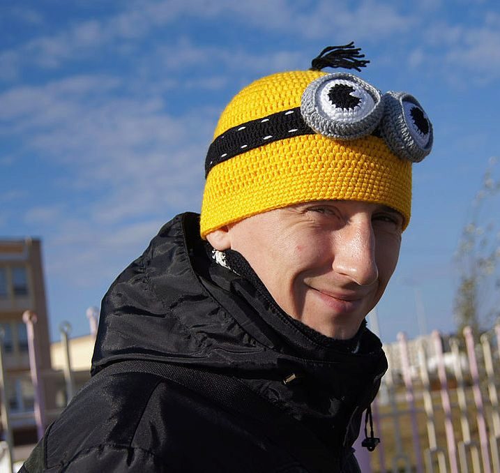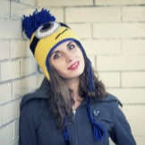 That is why the caps with the images of Minions enjoy simply amazing success. Models can be very different (earflaps, cap, stockings, cap, helmet). A minion can decorate the entire surface of the cap or decorate a small part of it. A minion may be one or several. Only bright yellow and big round glasses are required.
