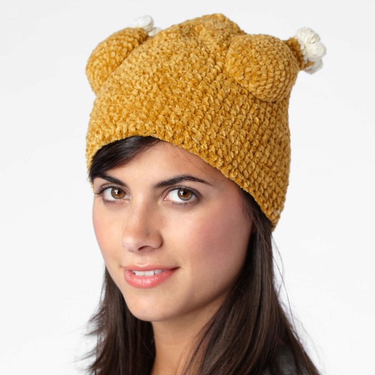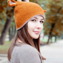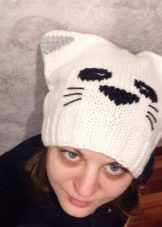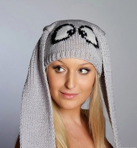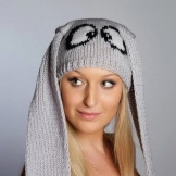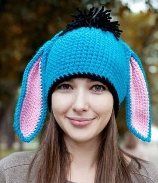 Caps with ears. Can be knitted, fur or made from other materials. The ears themselves may also be different. This is a cat, and hare, and bear, and fox ears and long, crocheted ears shoulder-length or even lower. Such ears can be used as a scarf. Long ears are decorated with tassels, pompoms, braids, bright decor, rhinestones and other details.