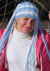 By the way, cool models can be less shocking. For example, a knitted hat can be decorated with multi-colored pom-poms, colorful patterns, braided braids and this model will look no less interesting.
