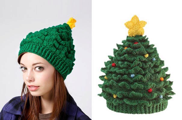 Current model for the upcoming holiday. The warm knitted hat is made in the form of a fluffy forest beauty-Christmas tree. The cap can be decorated with large colored beads - “toys” or left in its original form.