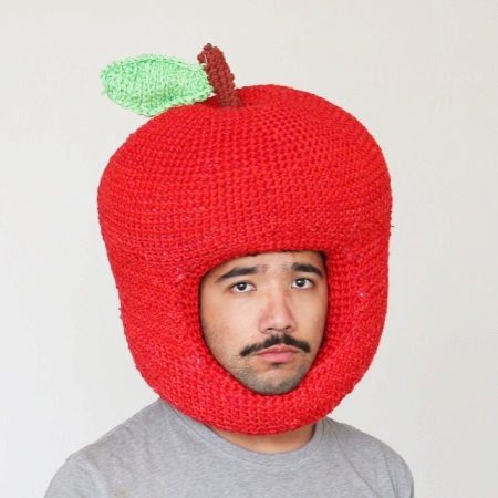 With such a hat, the feeling of hunger will never overtake! A huge juicy apple - a headdress only for the most courageous experimenters! Unusually, but warm, funny and delicious!