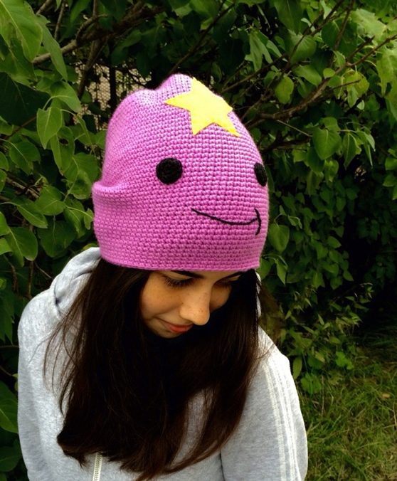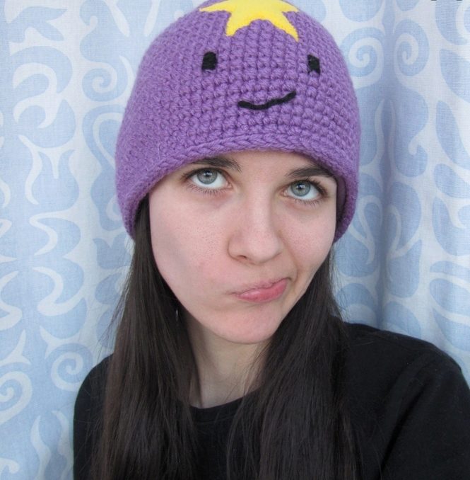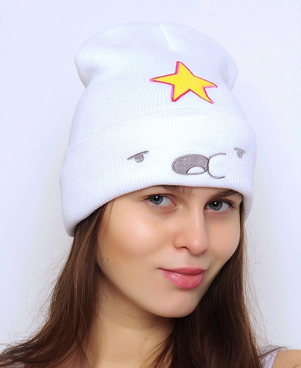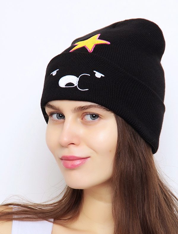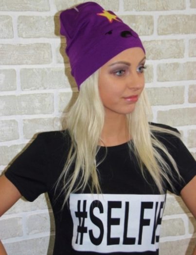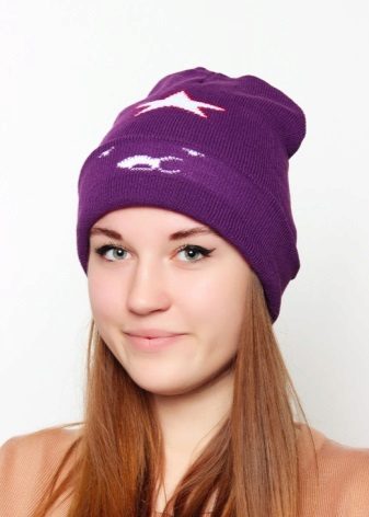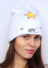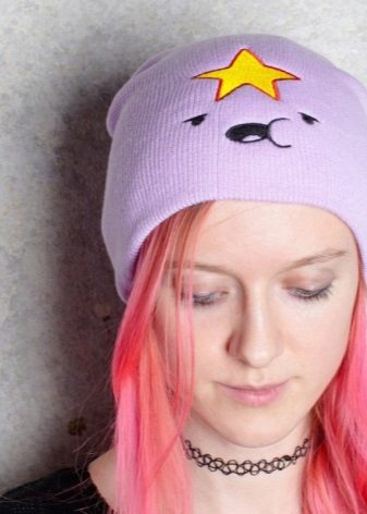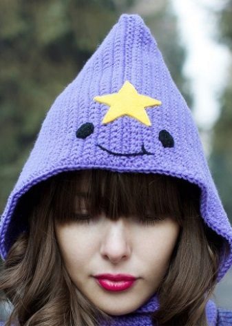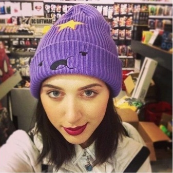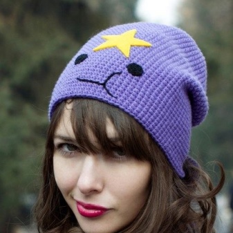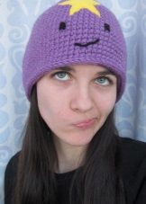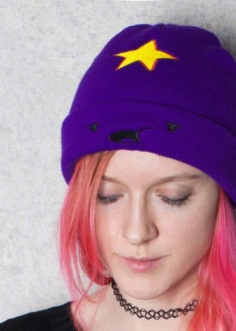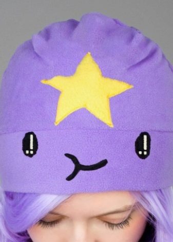 The cap in the form of a princess completely copies the appearance of the heroine. This is a bright purple accessory, with a yellow star and elements in the form of a muzzle on the lapel. For those who are familiar with the show such a cap will not go unnoticed. After all, the image of the heroine in this headdress is impossible not to know. But those who are not familiar with the cartoon can not be indifferent to the hat of the princess - so it is bright and unusual.