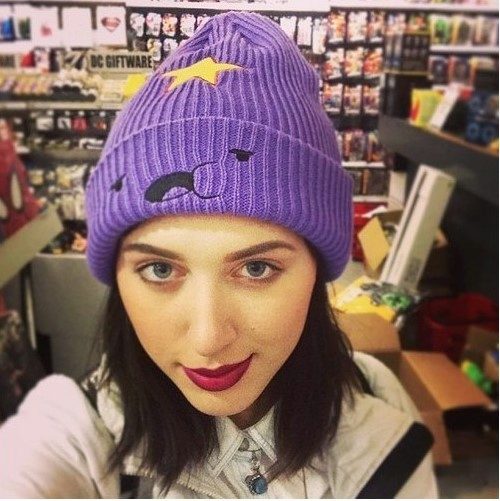 Clothing lines with images of the heroes of the animated series are rapidly gaining popularity. More and more designers use prints of Finn, Jake and other characters. Princess Pupyrka was no exception. In the cartoon, the young rebel Pupyrka looks like a cute purple cloud with a star in the forehead and a funny voice.