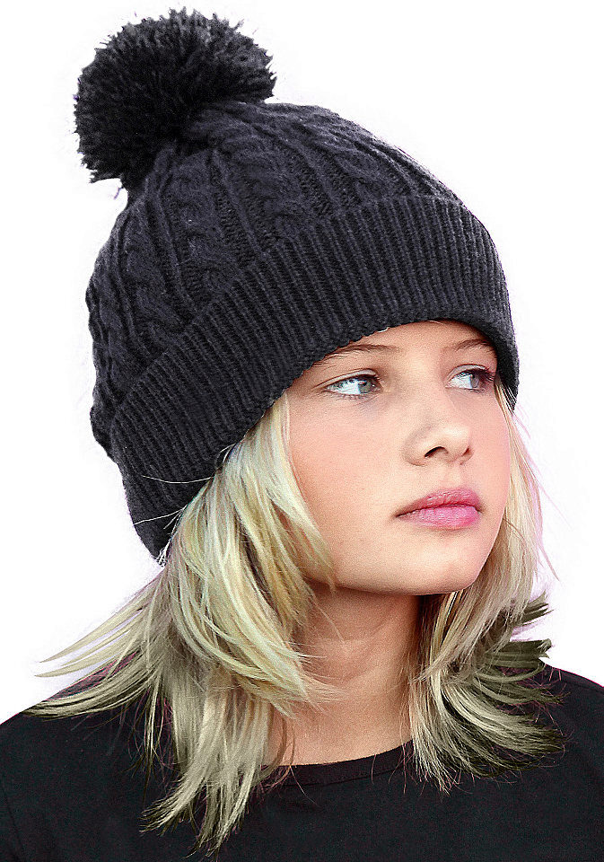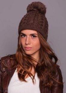 Many youth models of hats with a pattern of braids are often decorated with a mischievous pompon. Some people like these options may seem childish, but with the right selection of accompanying clothes, they look very interesting. Models with a pompon create the impression of a person with an active lifestyle, who is not afraid of fashionable experiments. Such caps can simultaneously have strings in the form of long braids woven from yarn.