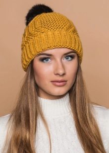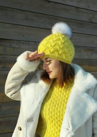 Knitted hat should act not only a stylish accessory, but also designed to warm in cold weather. Optimally cope with this task products made of wool. Smooth wool fabric is the best background for the relief pattern of braids. Wool in the caps can also be combined with acrylic. More expensive winter options are made from soft cashmere or alpaca. As for the most delicate mohair and angora, this yarn, as a rule, of pastel colors, is simply created to withstand bad weather and bad mood.