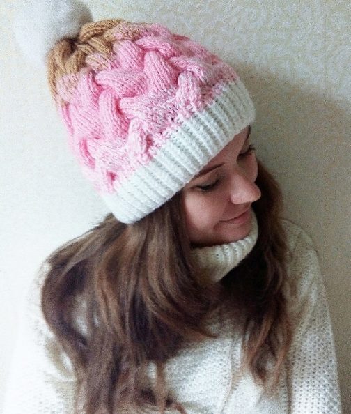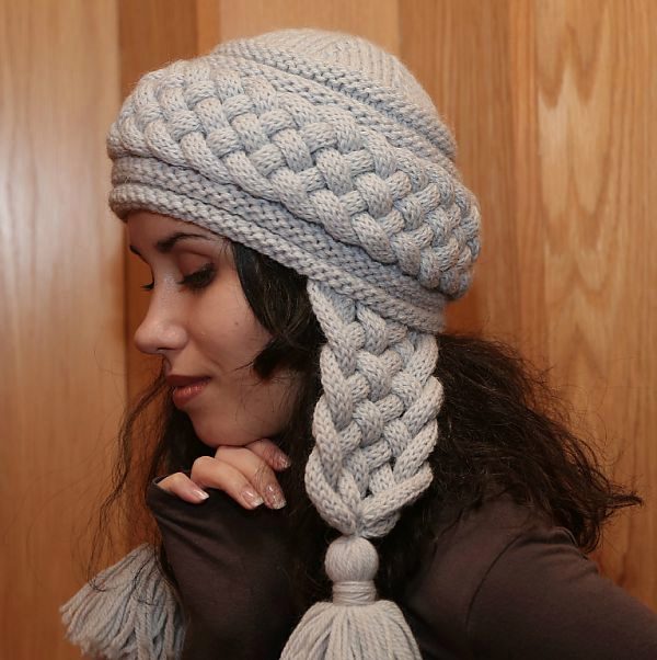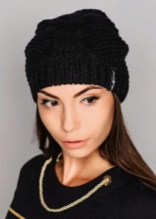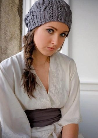 Knitted braids hat can not only warm its owner, but also significantly transform it. This pattern gives the headdress volume, making it textured. This is a winning option for girls with large facial features - the cap will soften them, distracting attention. In addition, hats with braids can be worn by women of any age.