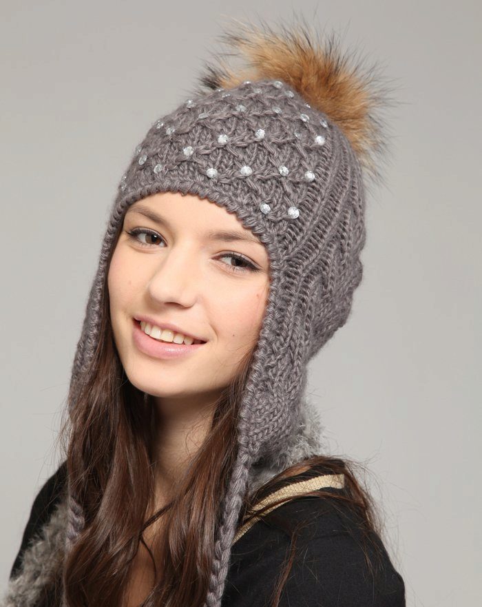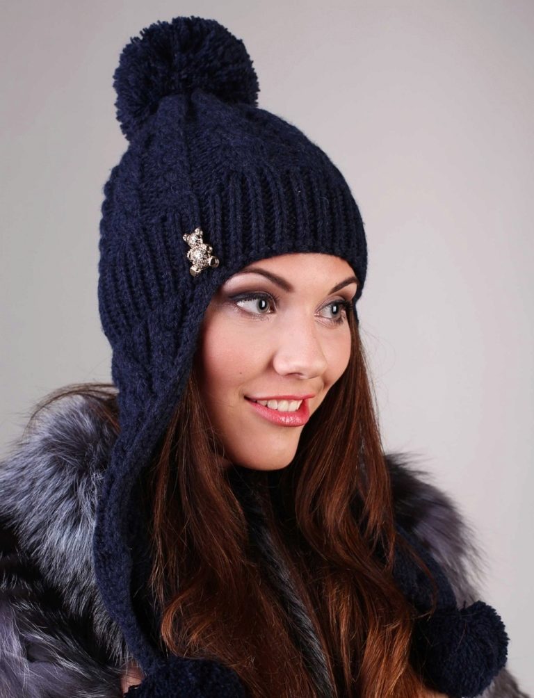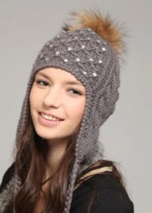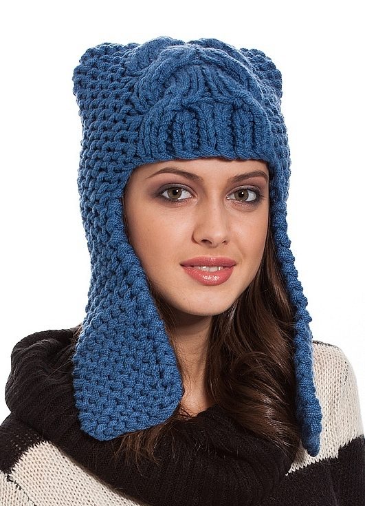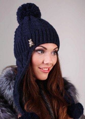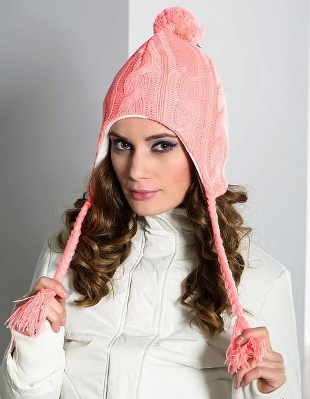 Even a traditionally fur hat with earflaps can be made with a braid pattern. In this case, its finish can be leather or fur.Fantasy designers even generates earflaps with textile inserts and lace.