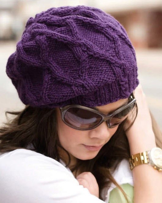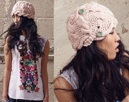 Today soft knitted berets are again in fashion, among which models with braids occupy a worthy place. This headpiece for romantic girls this season is worn as much as possible at the back of the head or shifting it to one side.
