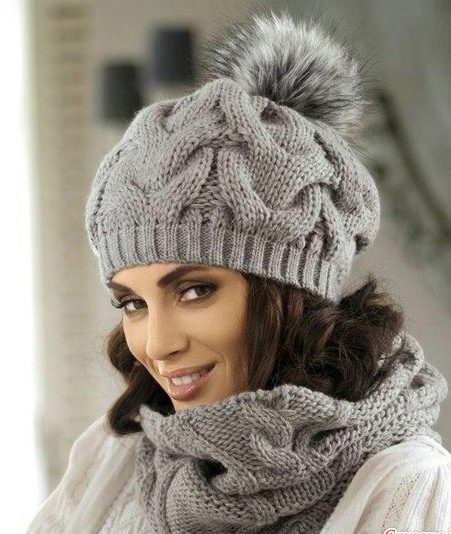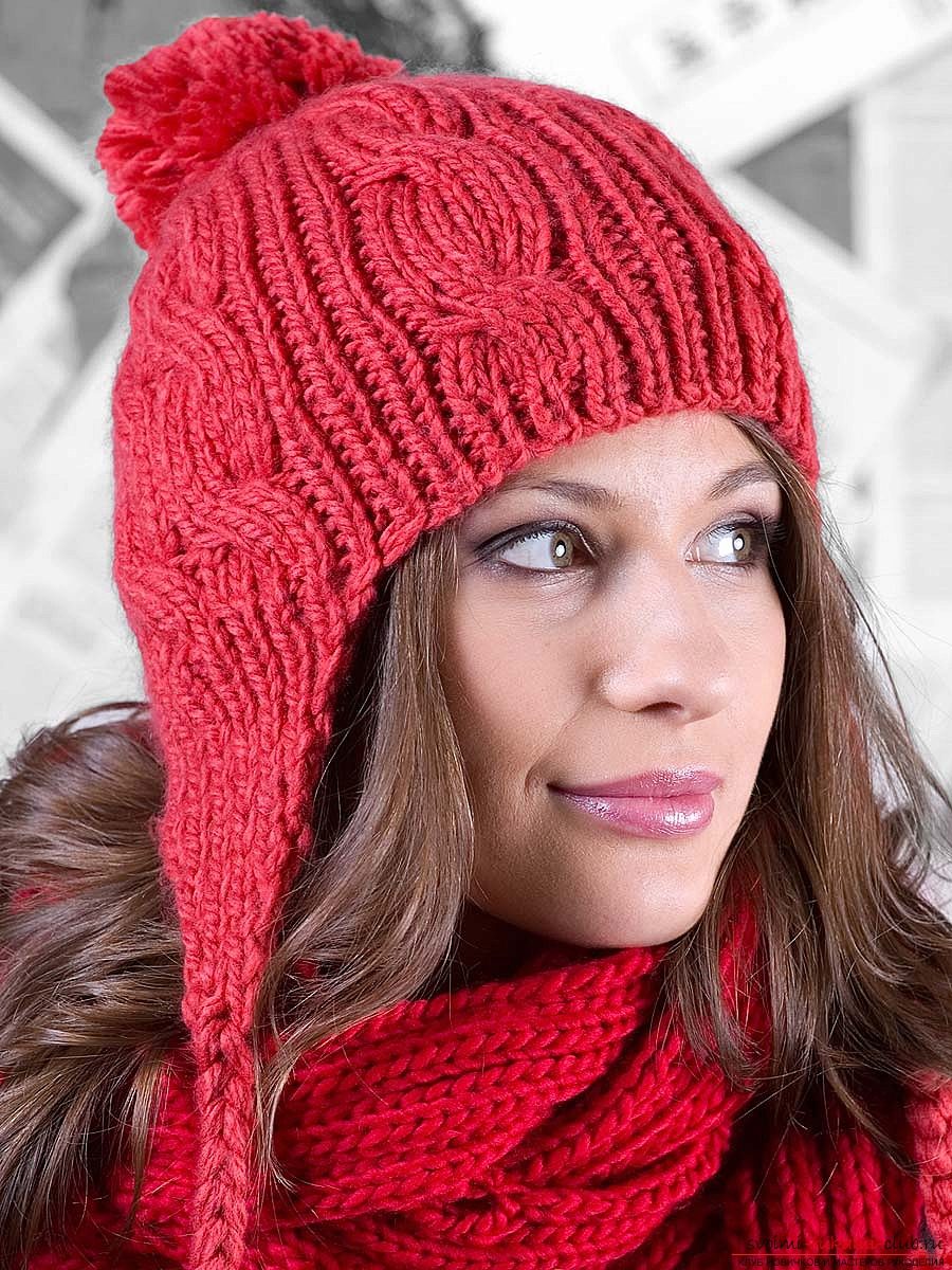Many of the above models of knitted hats can be worn as a winter hat. For example, this is a warm hat with a hat and a hat, a cozy dream, is tied up from thick yarn. Some hats with a pattern of braids can have a fleece lining, and then they are also suitable for winter frosts.