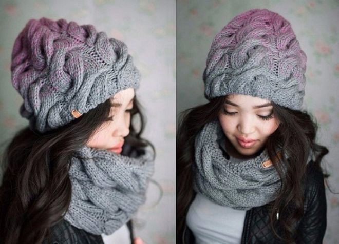 Recently, fashionable knit hats with gradient have become popular among women of fashion. This is a smooth transition from one color tone to another. Such stylish models are usually warm, as they are knitted in several threads of wool yarn.
