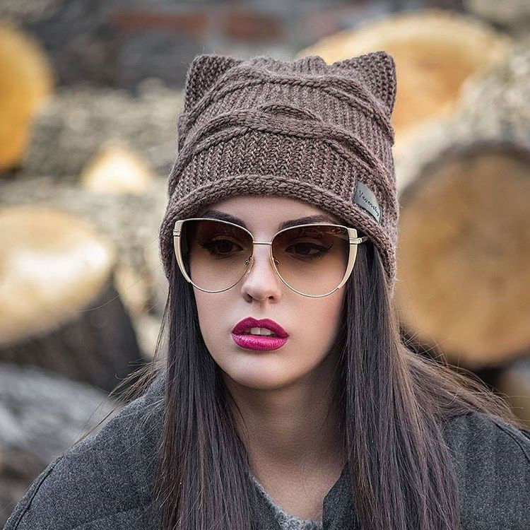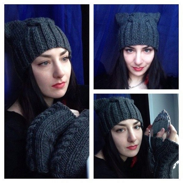 Lovers of shocking will love the hats of animalistic orientation - imitating, for example, cat ears. Such products can also be made with a pattern of braids.
