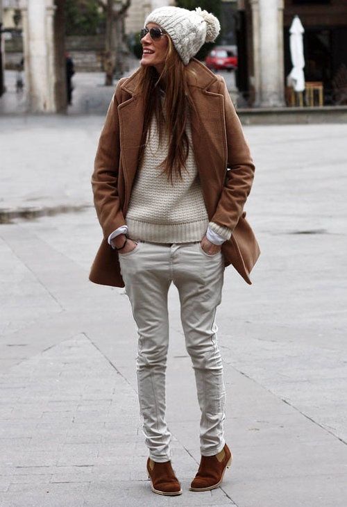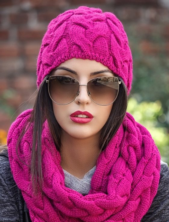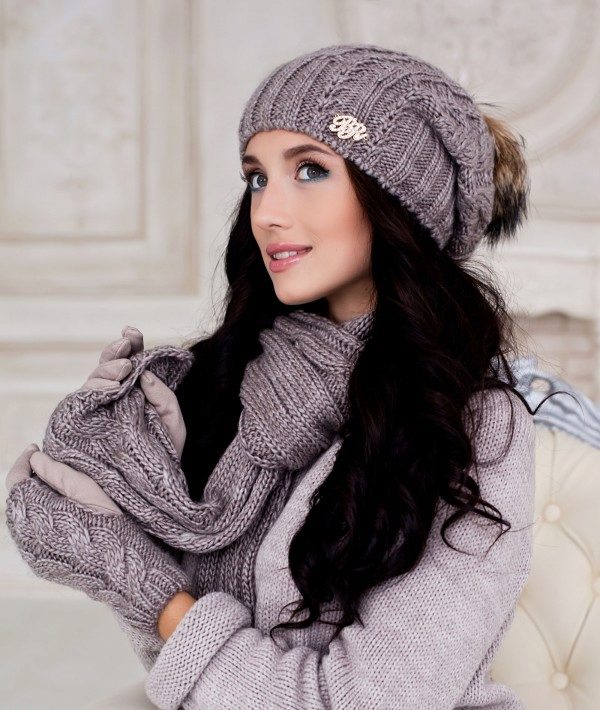 As for outerwear, avoid combining these hats with classic styles of coat, if you do not want to be reproached for lack of taste. This is permissible only if an elegant beret is connected with braids. The remaining models of knitted hats combine with jackets, down jackets and other similar clothing. As for fur products, then a short fur coat (but not a long fur coat) will fit this hat.
