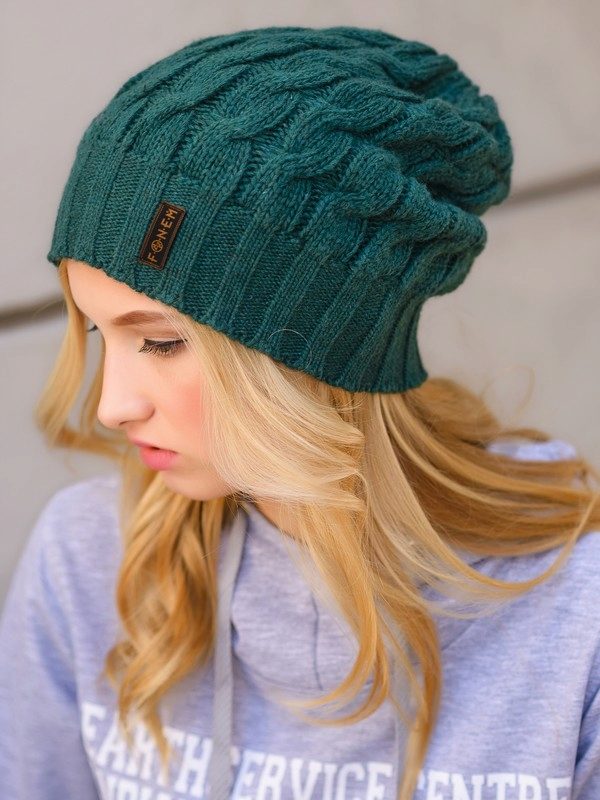 Fashionable hats with this interesting pattern look most harmonious with a knitted cardigan or sweater. They can also be combined with a mini-dress or a tunic and a short leather jacket on top.
