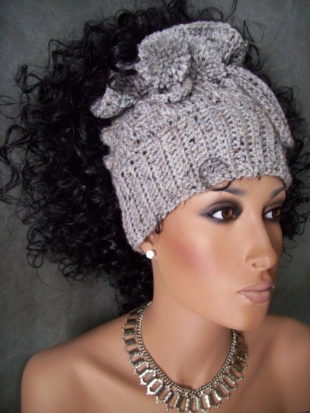 Long-haired young ladies can recommend a hat with a spectacular pattern, having a hole for the braid or tail at the crown.