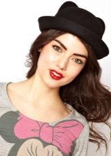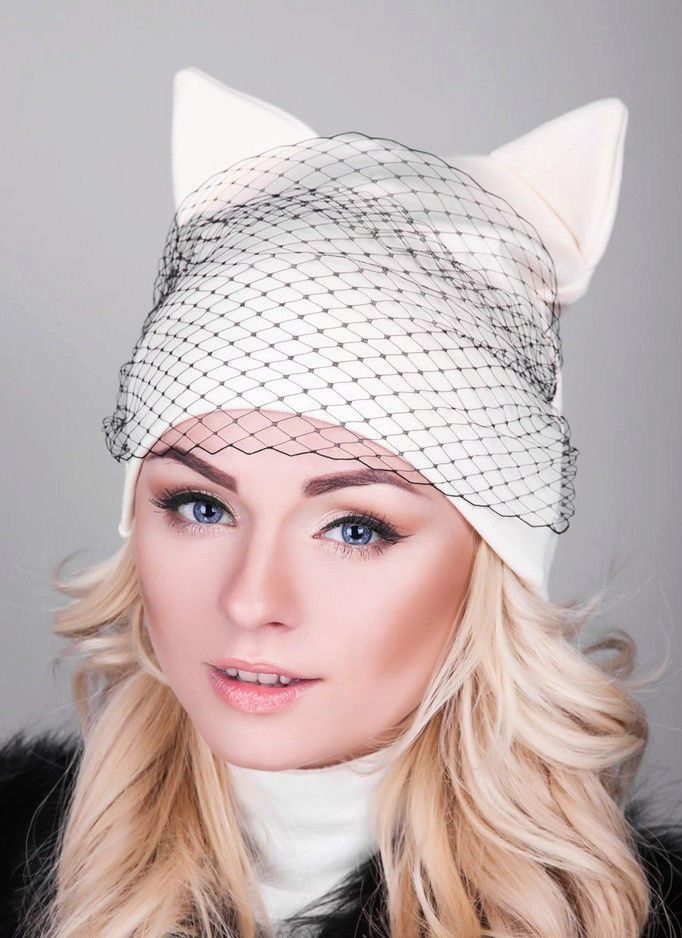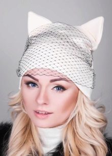 Despite the caution not to combine such hats with evening dresses, the designers offered their own version of a hat with ears and a small veil. It looks very elegant, adding to the owner of such a headdress of mystery.