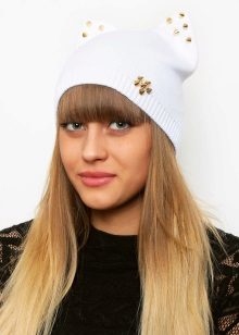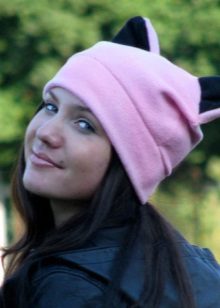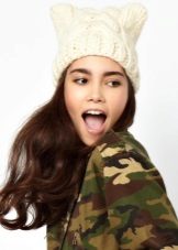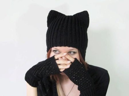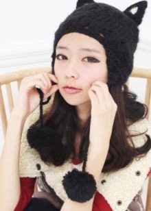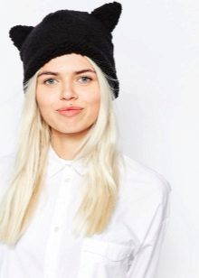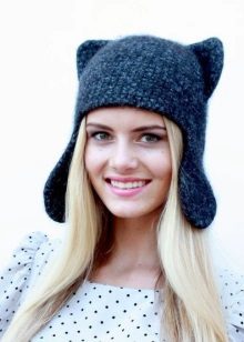 There is no official name for such a hat, but usually it is called a cat-cap, a hat with ears, a cat-hat or a cat-hat. In such a hat, the girl becomes a charming twin. The image of a cat in combination with a cute face makes an indelible impression on all who only pay attention to the owner of the original headdress. It is for this reason that both girls and girls choose an amusing cat-cap as a dress for the winter and autumn. In addition to the ears, the cap can have on itself a pattern in the form of a cat's face or on the front part of the manufacturers place the characteristics of animal eyes.