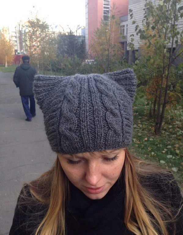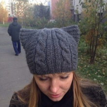 There is a huge amount of knitted hats. On the Internet there are many knitting patterns for cat-hats, which even a beginner can figure out. They are knitted from different threads using different methods. It can be fluffy when using weed-type yarn or more dense if a thick thread is used.