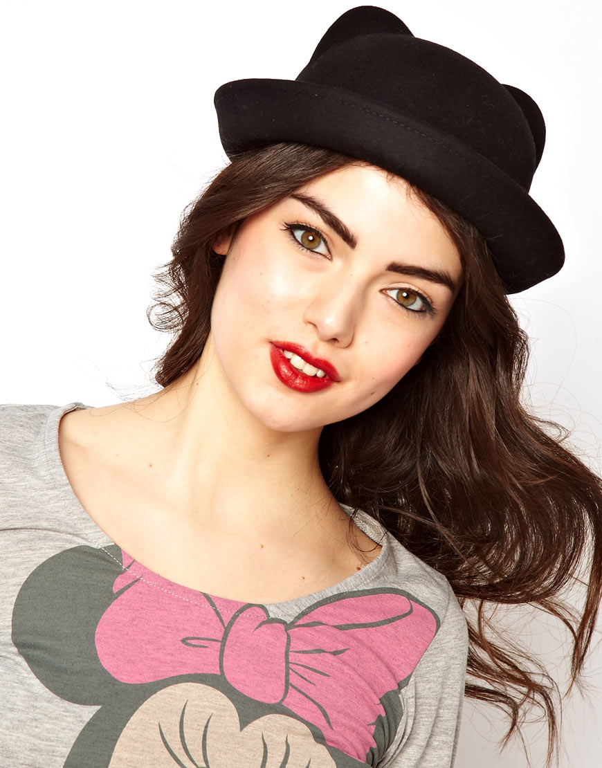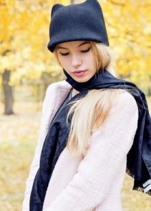 For the first time this hat with cat's ears was presented to the fashionable audience by an American designer Anna Sui. The idea was so much liked, and the designers, including that this headdress took a firm place in the list of fashion trends. True, from the cat ears the mods "went" even further - hats appeared - owls, wolf caps. But the most popular, everyone is enjoying the "cat" caps and wanting to try on the image of a cute cat or cat is becoming more and more.