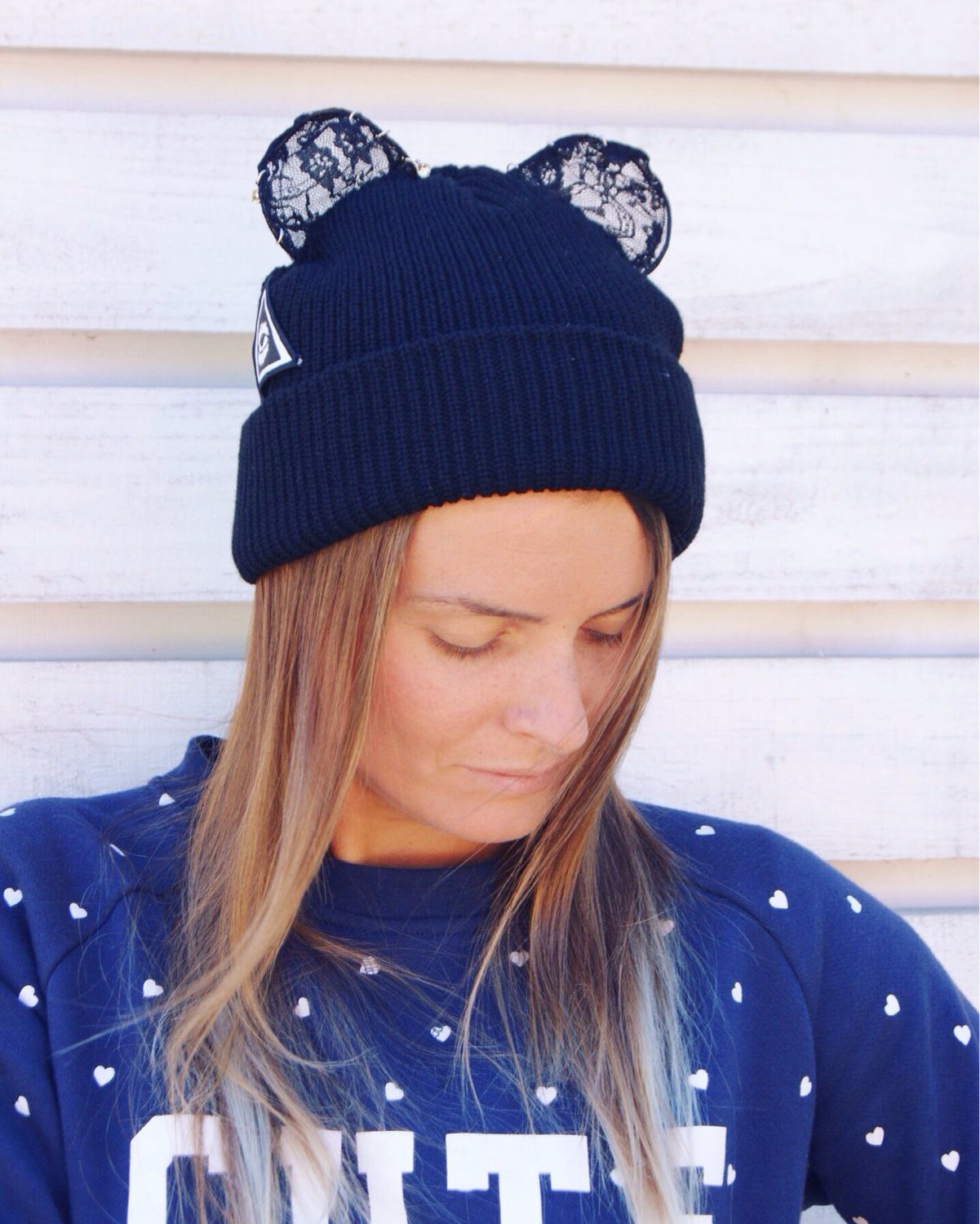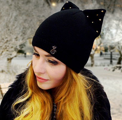 Considering that cat-like hats are gaining wild popularity among the female half, almost all the leading fashion brands presented their styles of cat-caps in their products. Each tried to find something of their own, distinguishing them from others. For example, hats of such fashion brands as Louis Vuitton and Chanel added sparkling elements to headdresses, in the form of sparkling rhinestones and crystals. Their ears are decorated, and on the front of the cap there is an equally bright brand logo, also beautifully shimmering in the light of the sun or lanterns.
