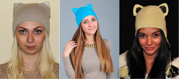 It is also worth noting that not everyone's face may have caps with cat ears. They look good on round and triangular face shapes. For those who have an oval face, this style of cap can only lengthen the face. However, taking into account various forms, it is worth experimenting, for example, with fluffy hats that will hide the shape of the face.