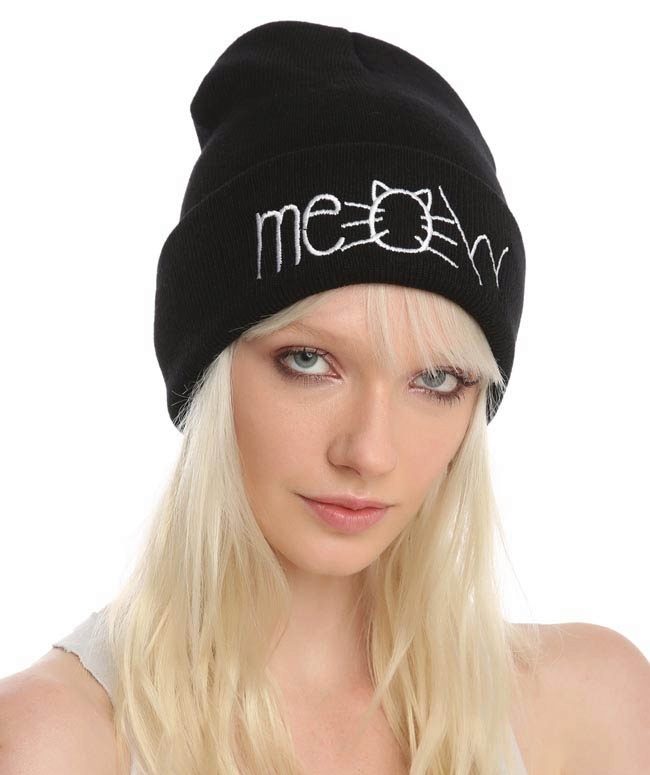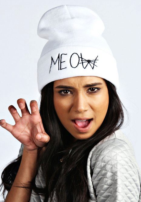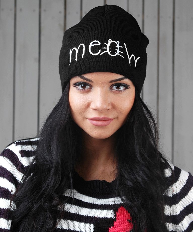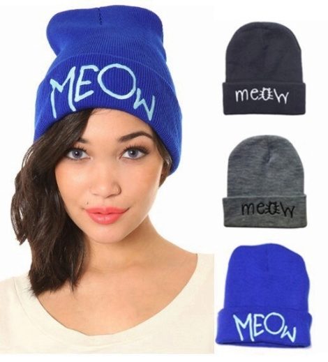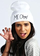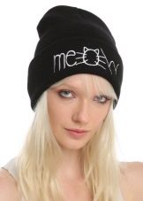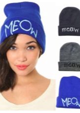 Young people prefer interesting options, for example caps with the words "Meow". They create a stylish and original image.