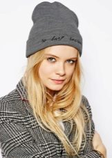 Perhaps the most popular black caps with inscriptions. And this is not without meaning. This season, little tight black hats were present in many designer collections.