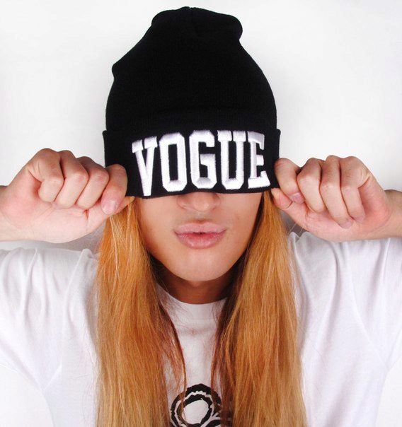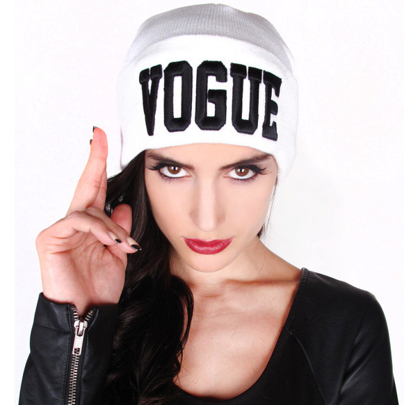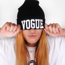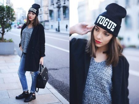 The trend of this season is a stylish, unusual hat with the inscription "Vogue". She came from a male wardrobe. However, women's options look cute and playful. The “Vogue” hat has an elongated shape, a bit like a sock. This type of sewing allows you to wear it in many ways.
