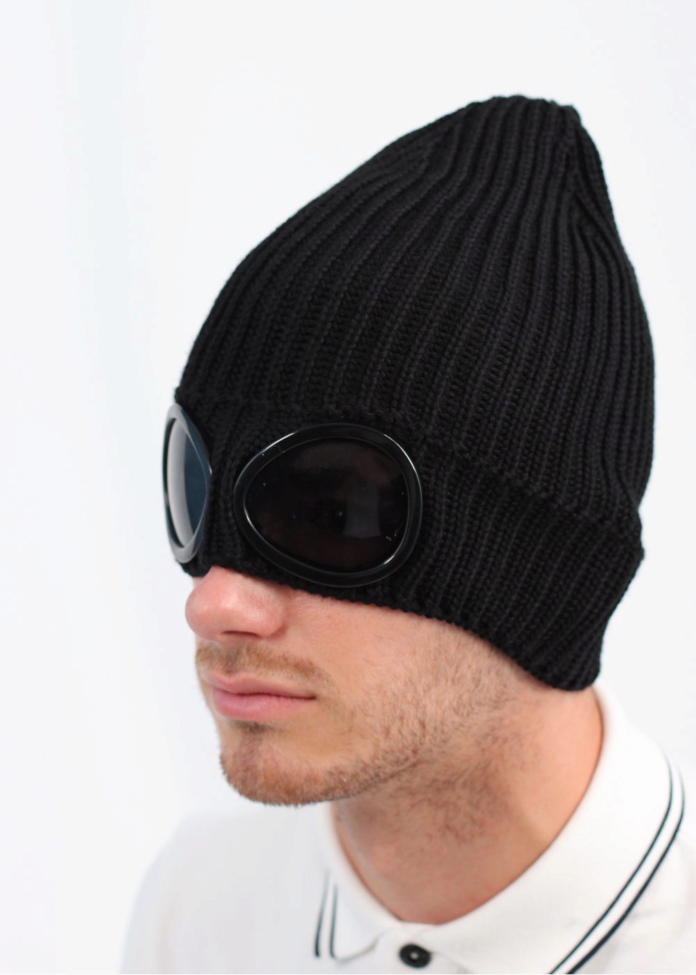 A cap with lenses will look good with sportswear, even a somewhat aggressive style, ideally from C.P. Company, of course.