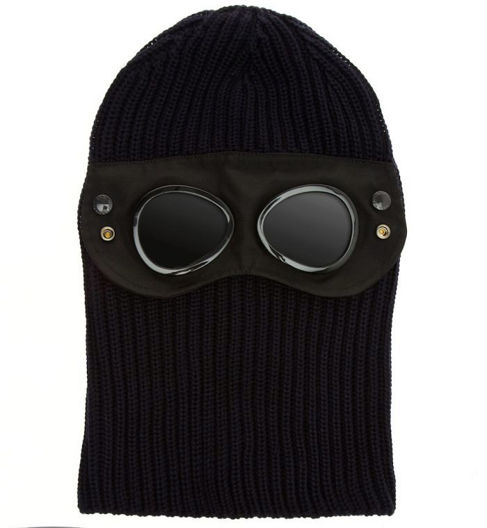 Balaclava (knitted helmet) with lenses that completely covers the face and neck. It may be popular with people who for some reason do not want to fall into the lenses of surveillance cameras.