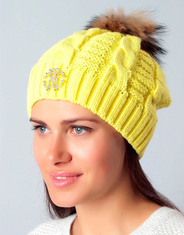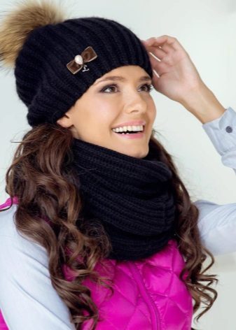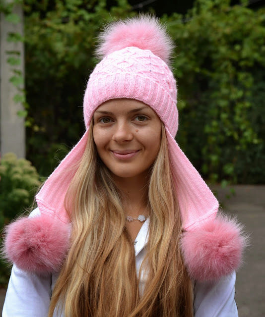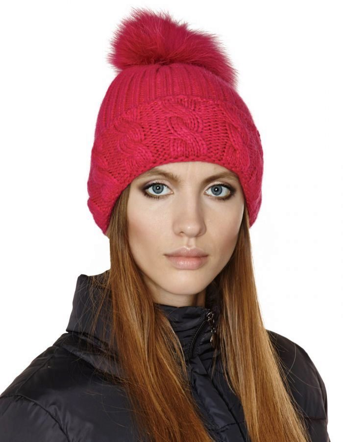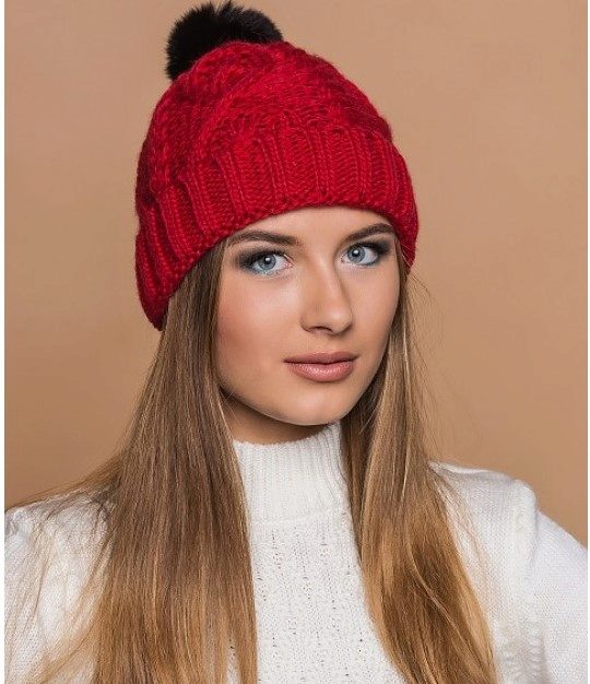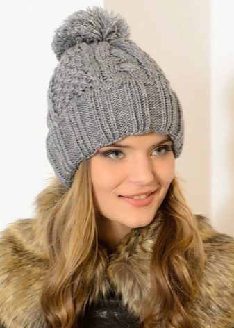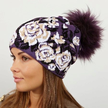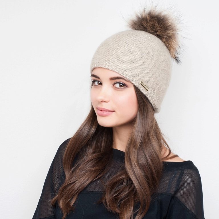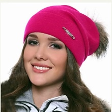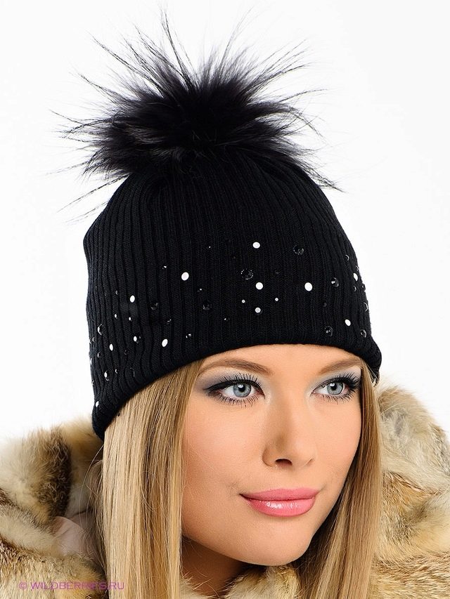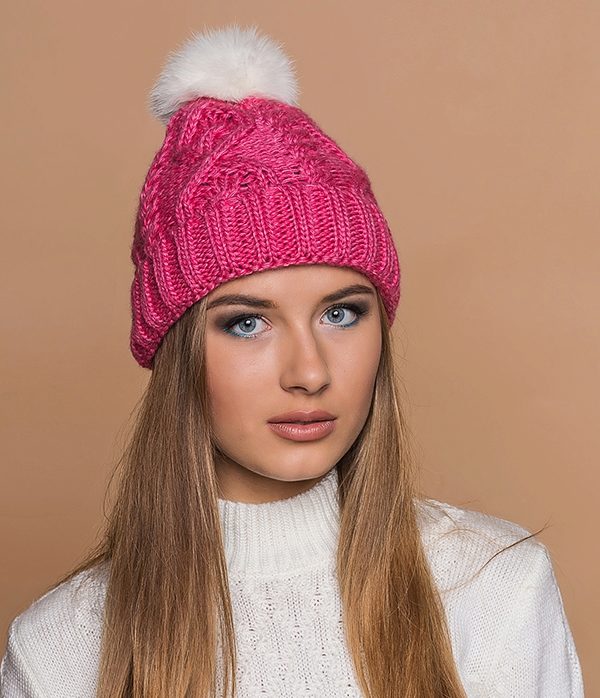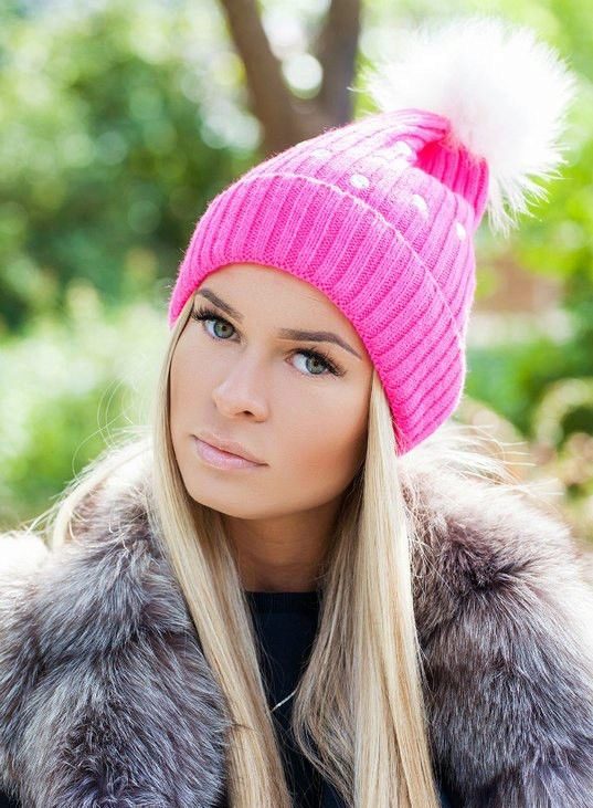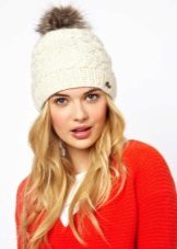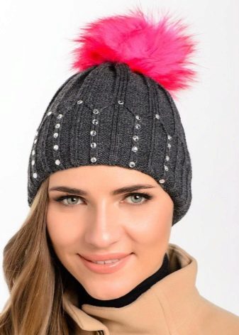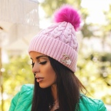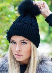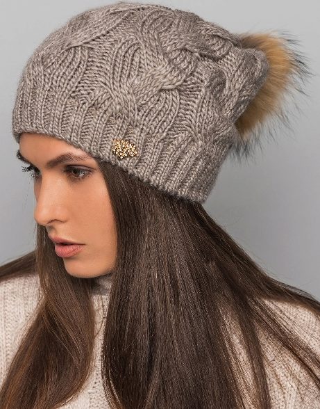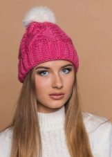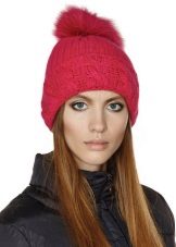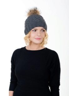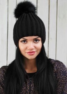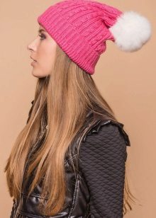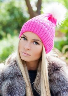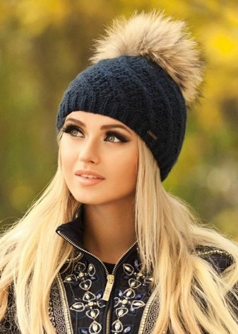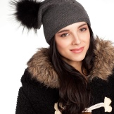 A pom-pom on a hat also comes in two forms: from the same material as the hat itself, or from fur. Most often for pompons they use mink, raccoon, arctic fox, rabbit or fox fur, red or black-brow. The combination of bright yarn and natural, unpainted fur is very fashionable, although there are also a lot of models where the fur is colored to match the product.