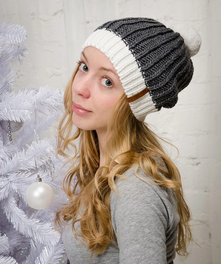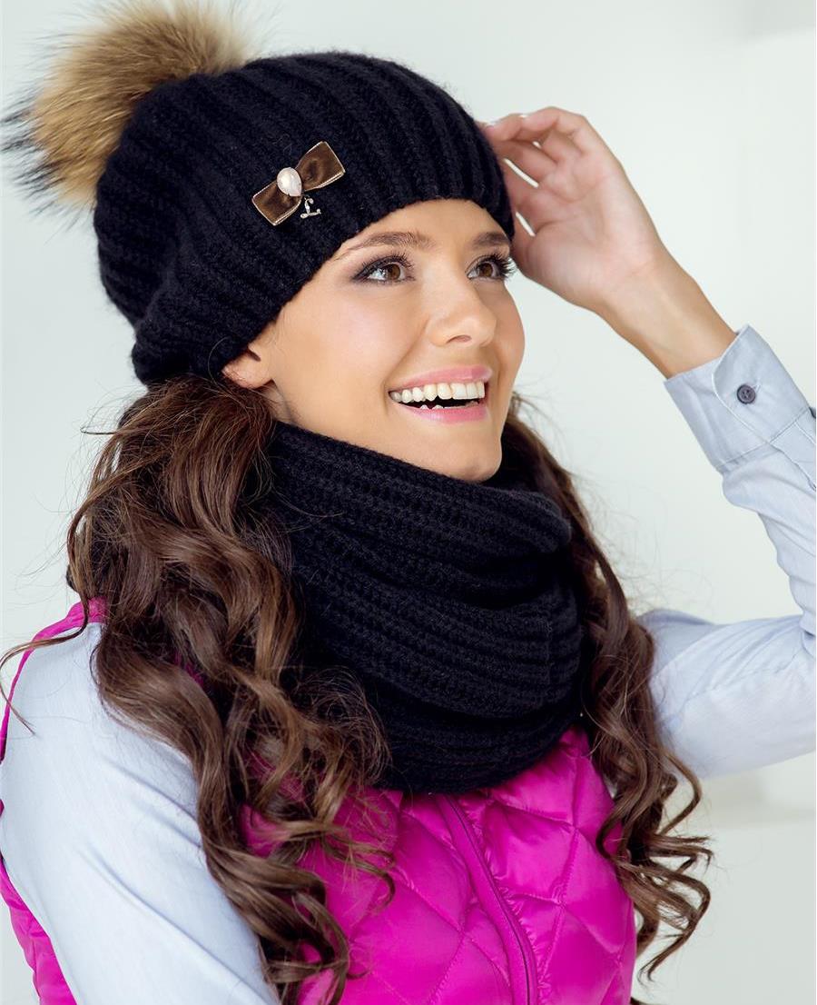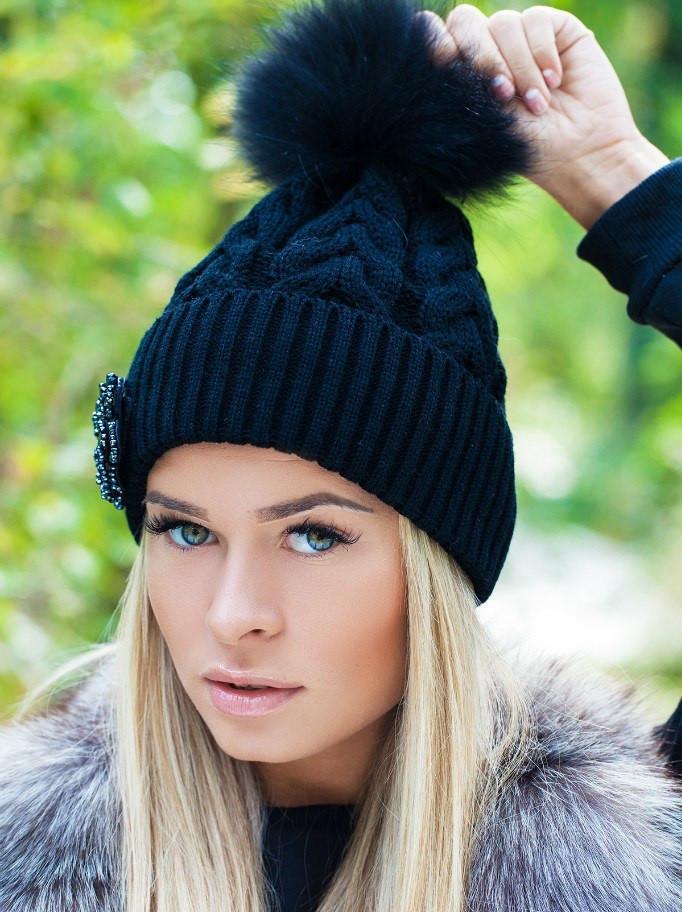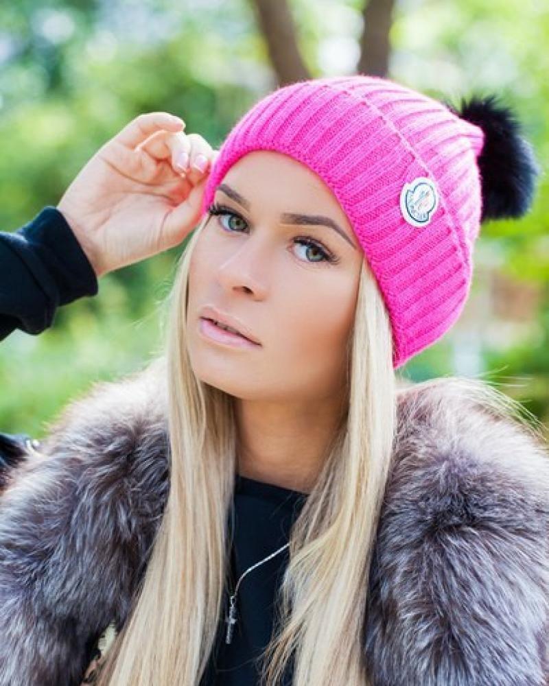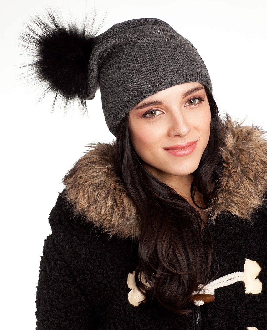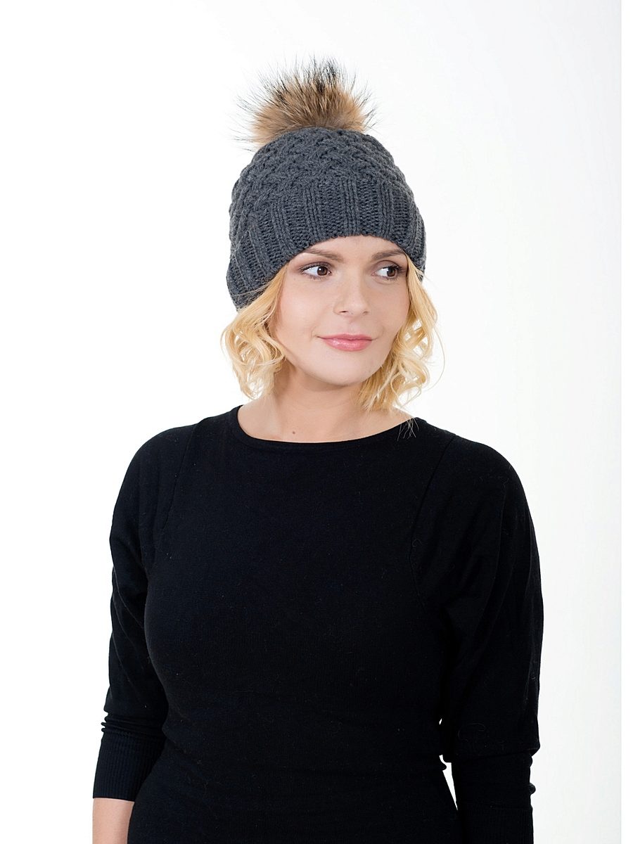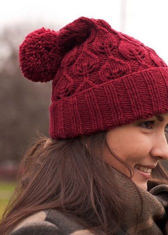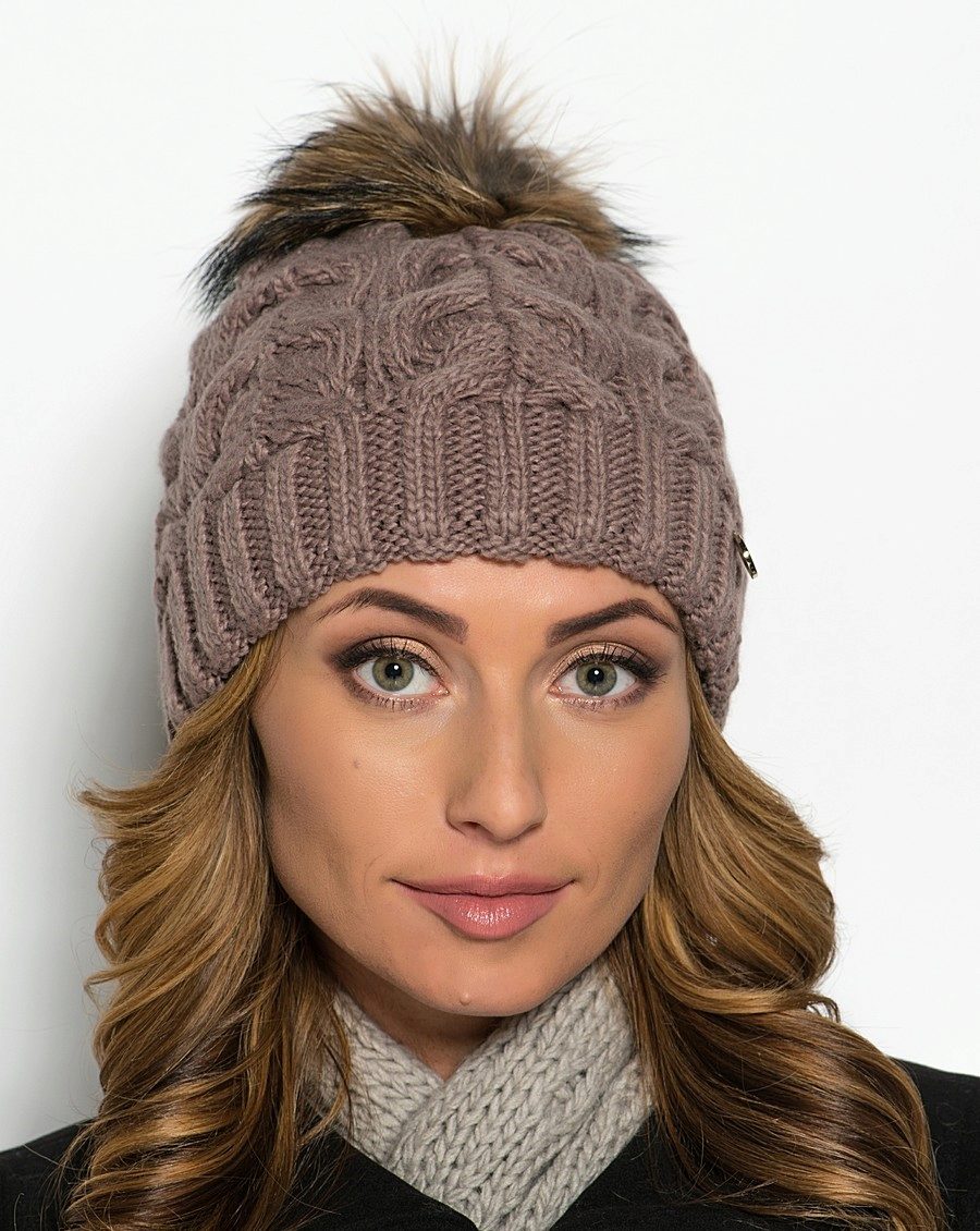 A pom-pom on a hat also comes in two forms: from the same material as the hat itself, or from fur. Most often for pompons they use mink, raccoon, arctic fox, rabbit or fox fur, red or black-brow. The combination of bright yarn and natural, unpainted fur is very fashionable, although there are also a lot of models where the fur is colored to match the product.