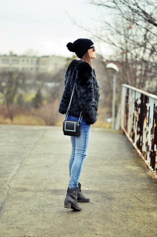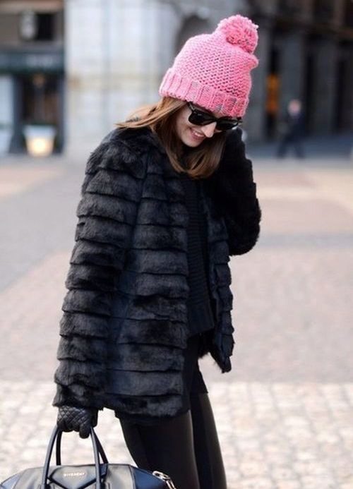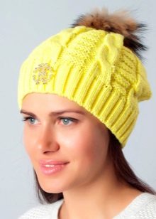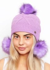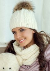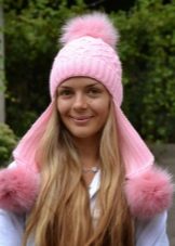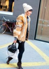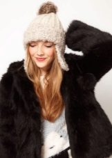 The fur coat itself is a luxurious accessory, therefore it is necessary to combine it with frivolous headdresses with great care so as not to create the feeling of bad taste. Stylists advise to combine knitted hats with a fur pompon with short fur coats, Sewn from the same fur. In this case, the shade of the cap should be in harmony with the color decision of the main part of the image.