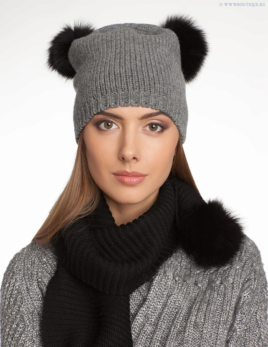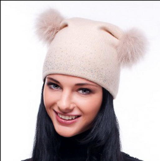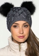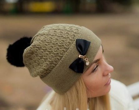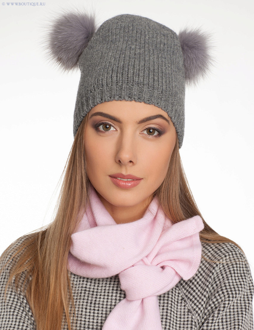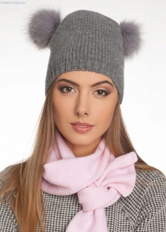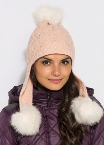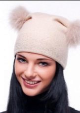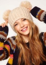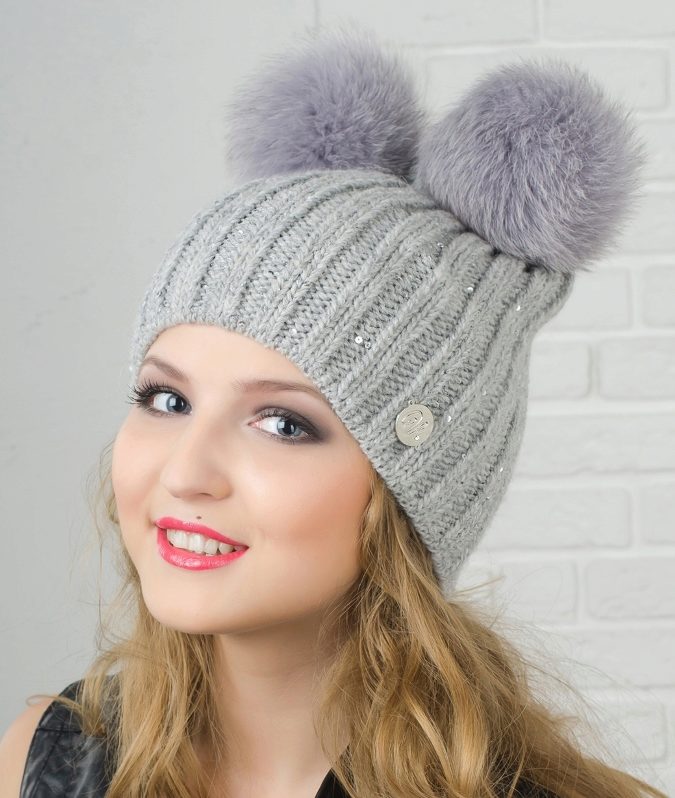 In stores often there are cute hats, with two pom-poms on the sides, in the manner of ears. Despite some childishness, these hats look feminine and touching.