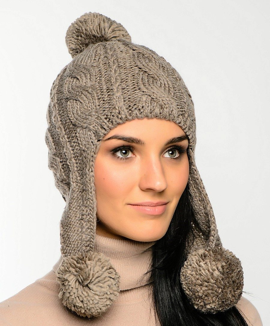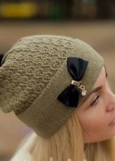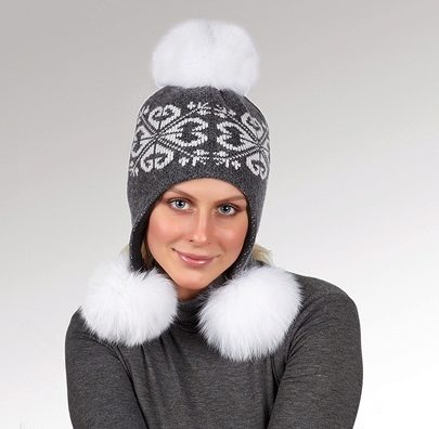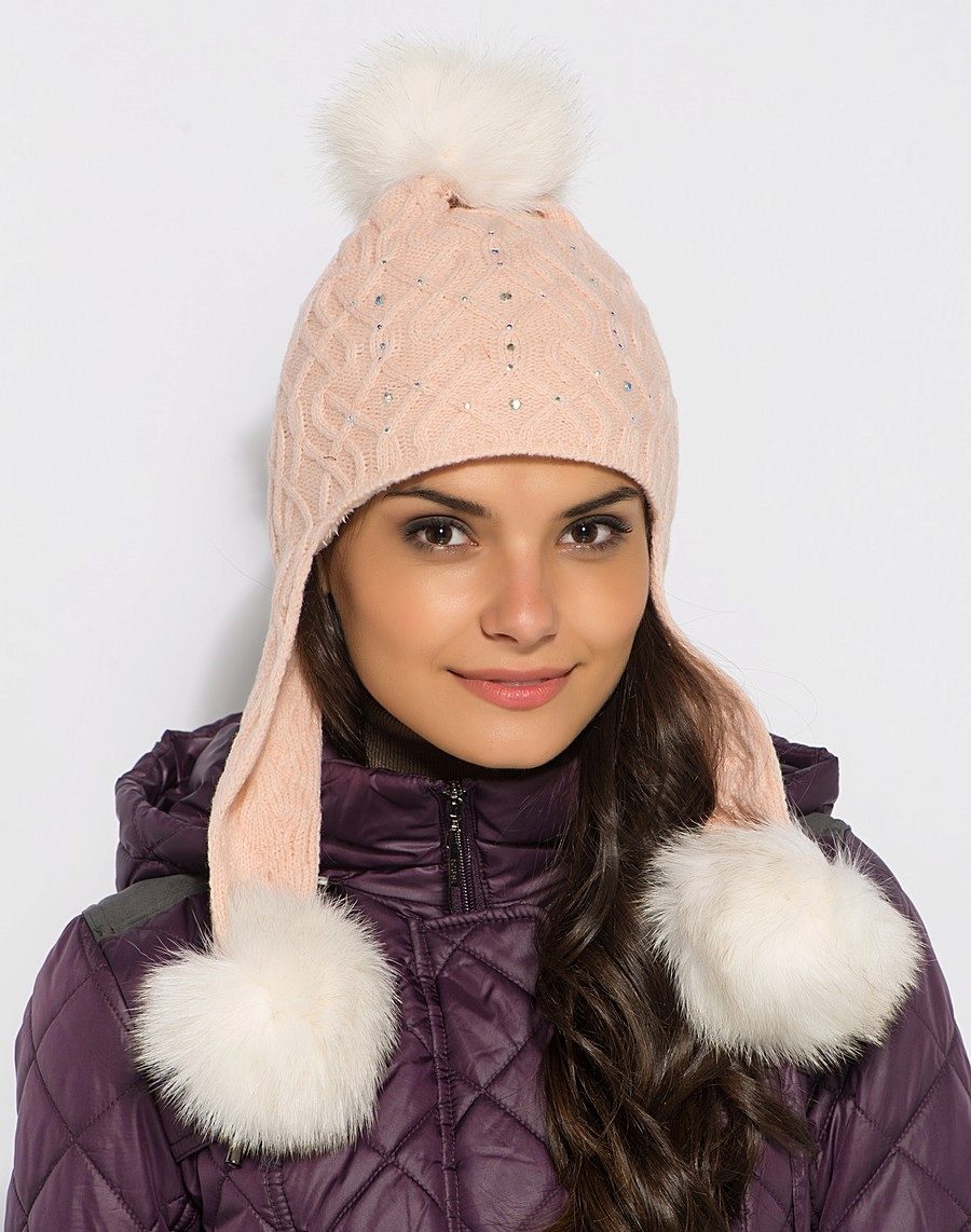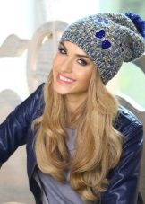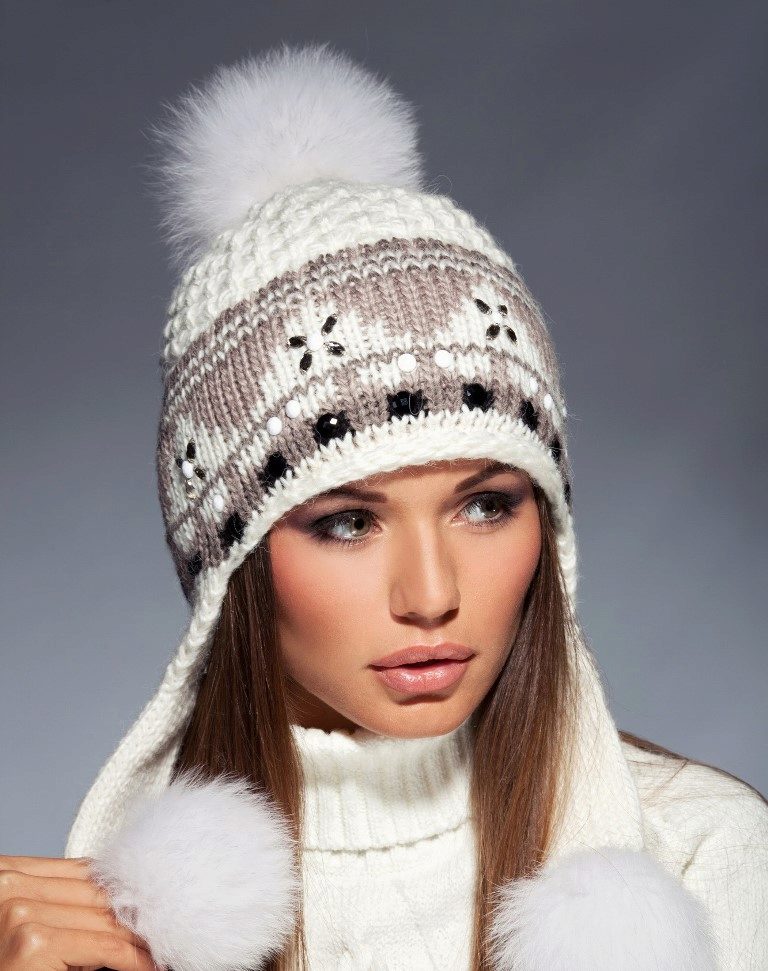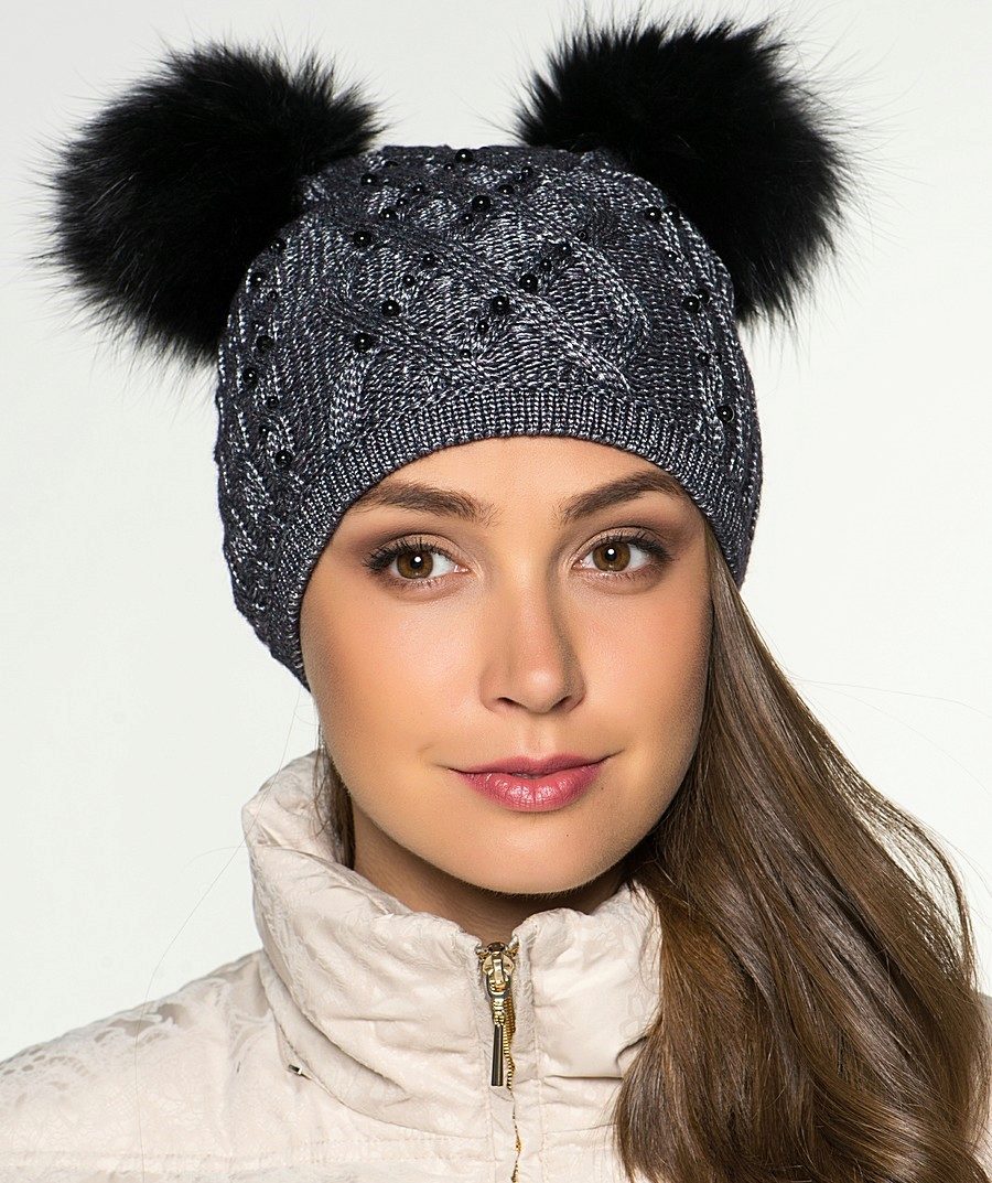 In stores often there are cute hats, with two pom-poms on the sides, in the manner of ears. Despite some childishness, these hats look feminine and touching.