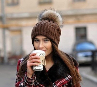 Since now hats with a pompon at the peak of popularity, you can meet them in all sorts of shades. The most versatile ones are discreet, natural colors: chocolate, coffee, khaki, wine, deep blue. Another fashion trend is pastel hats. It is soft pink, forget-me-not, lilac, all shades of beige - from barely milky to richly caramel.