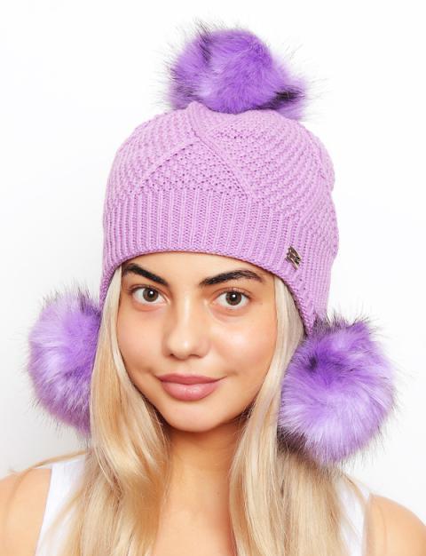 Caps with three pom-poms usually look like this - one is on the “traditional” place - on the top of the head, and the other two are sewn to the edges of the cap (or ears, if it is a “earflap”) on the sides, at the level of the cheekbones. Looks great on little girls and adult ladies.