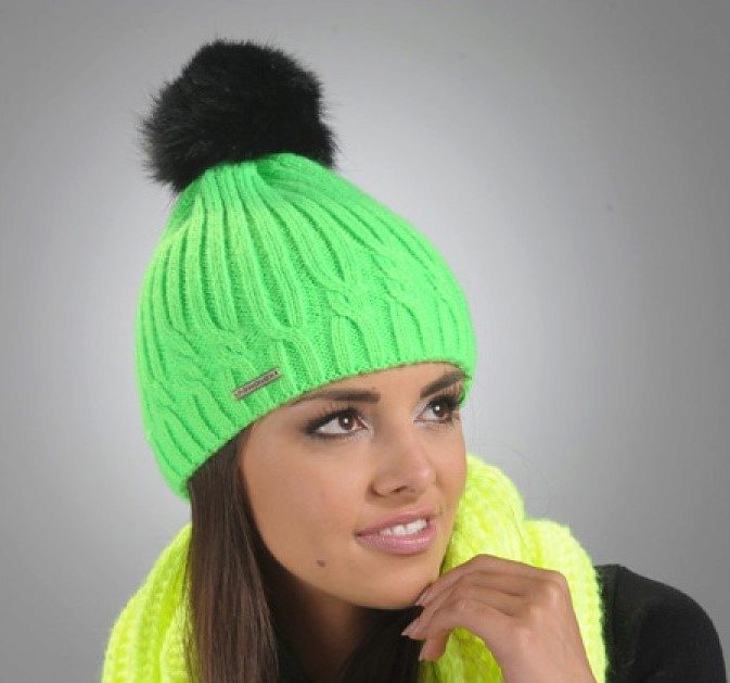 One of the most powerful modern trends is brightness, everywhere and in everything. Being the subject of a wardrobe designed mainly for the cold seasons, bright hats with a pompon of yellow, emerald, red or turquoise shades perfectly harmonize with the thick jackets or down jackets of equally cheerful colors.