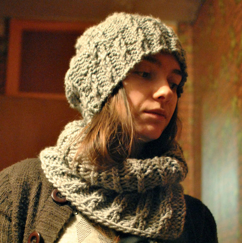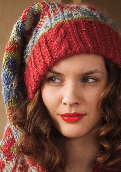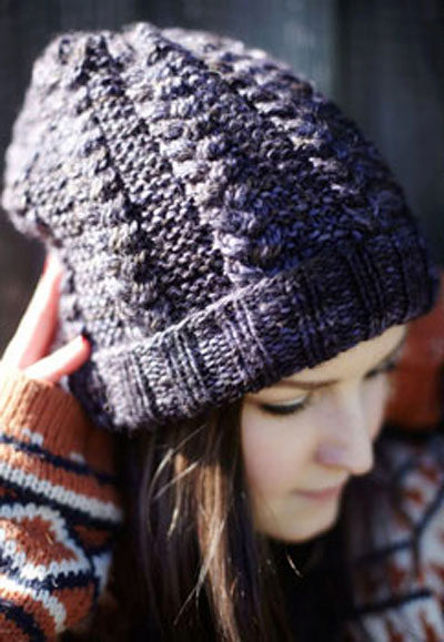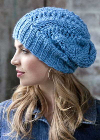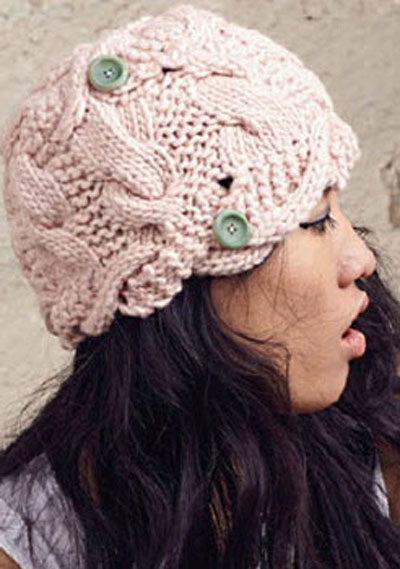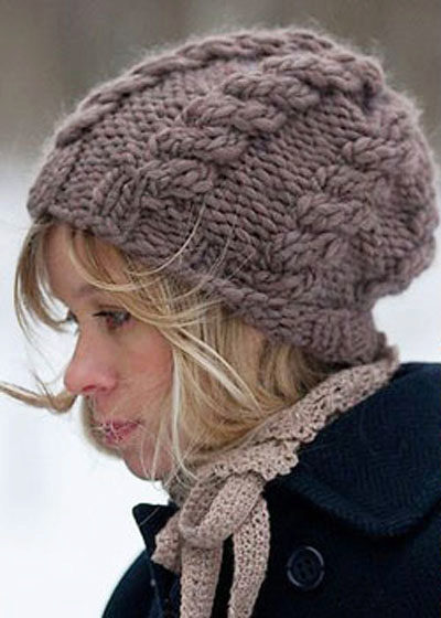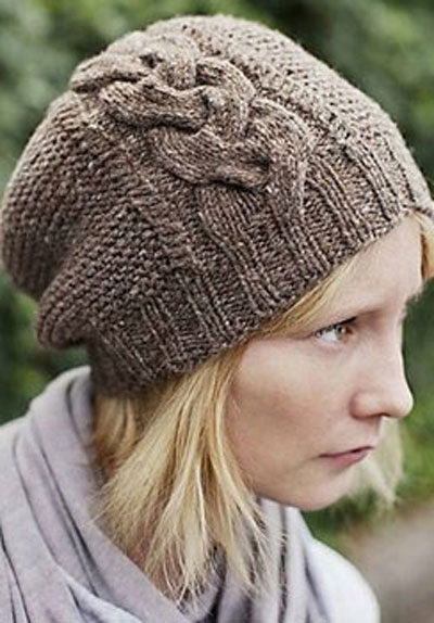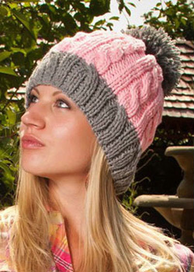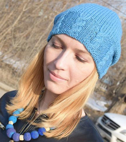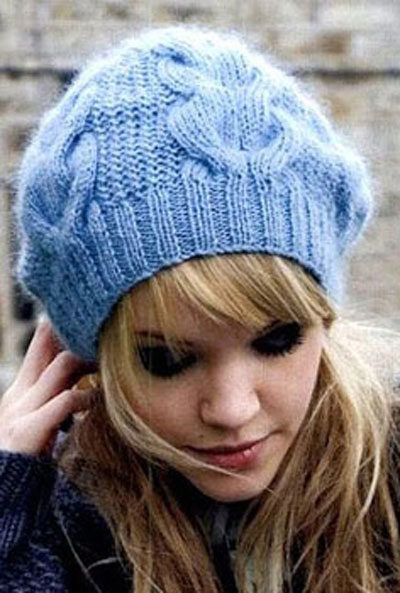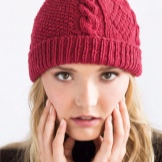 Braids can be connected to a simple beanie cap, tight-fitting head. Cap-toe, fashionable lately, looks beautiful with a pattern of braids. Moreover, often in the manufacture of this product uses a horizontal (cross) knitting.
